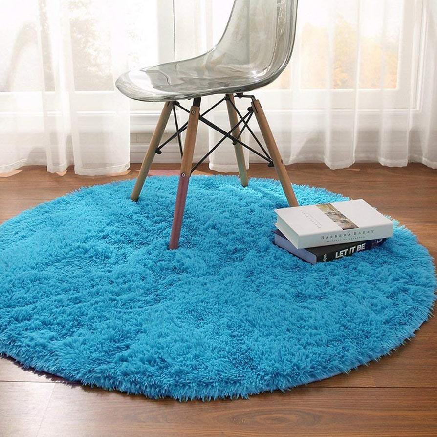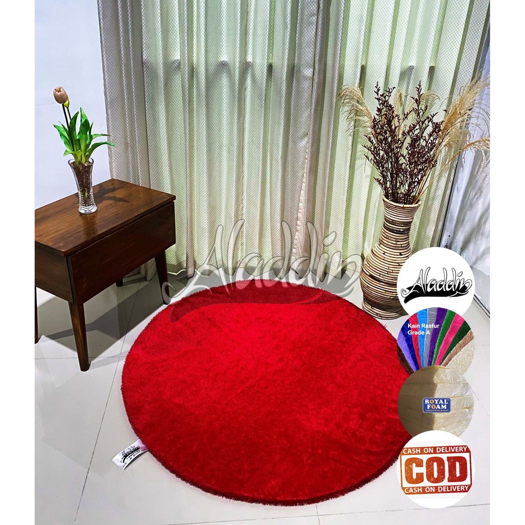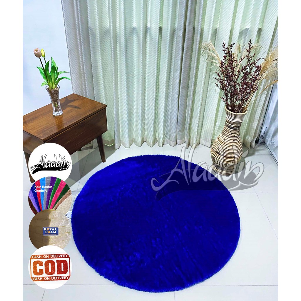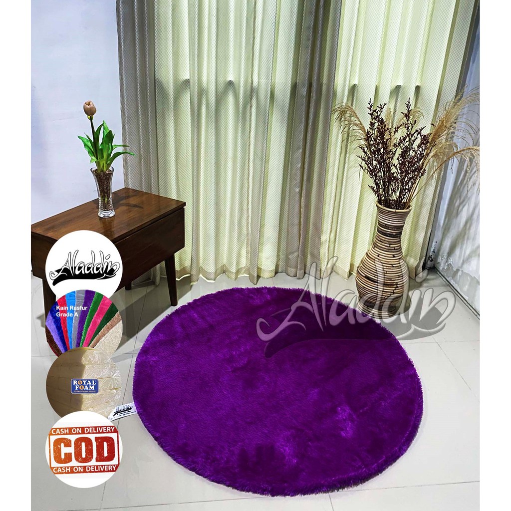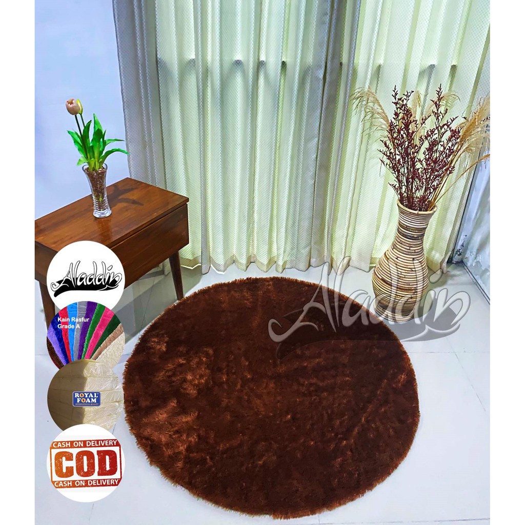 (ISI BUSA YELLOW) PROMO Aladdin Karpet Bulat Premium Bulu Rasfur Lembut (Diameter 85cm) GLOSSY Halus & Lembut / Kualitas Premium