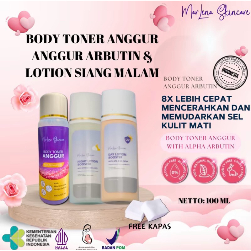 PAKET WHITENING GLOW HB KLOBE MARLENA SIANG MALAM DAN BODY TONER