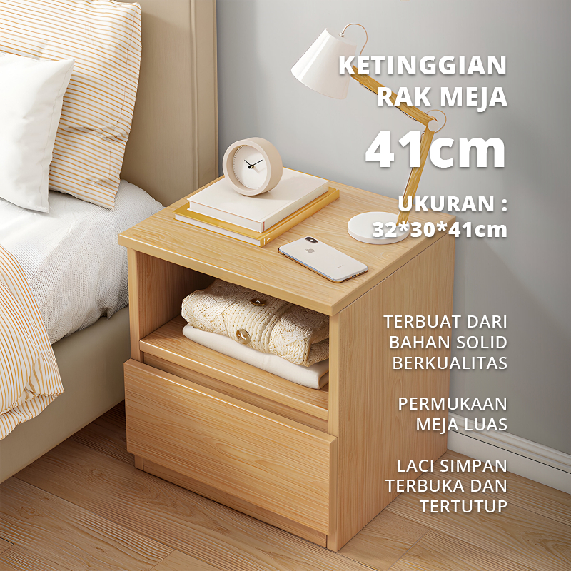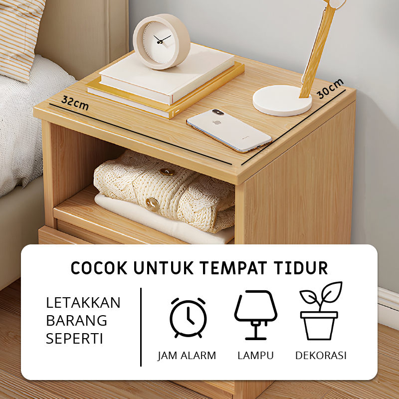 FURNITURE - Meja Samping Tempat Tidur Minimalis Dengan Laci Penyimpanan - Meja Nakas Kamar Aesthetic