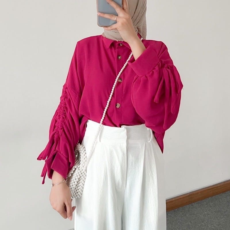 LUNAMAYA BLOUSE ATASAN WANITA CRINCLE / ATASAN KEMEJA LENGAN SERUT AKTIF