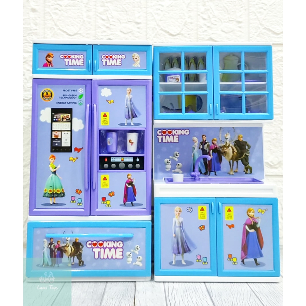 Mainan Anak Perempuan Alat Masak Masakan Kulkas Kitchen Set Frozen Elsa Anna BP6650
