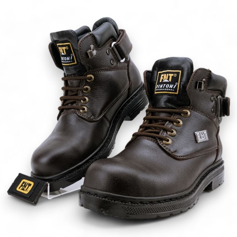 Sepatu Pria Boots Safety Kulit Fintoni Steel Toe 8901