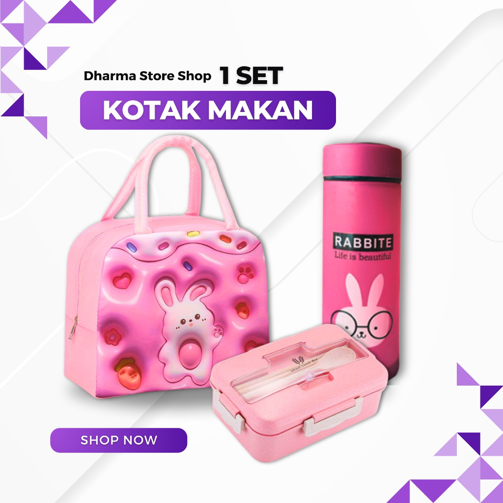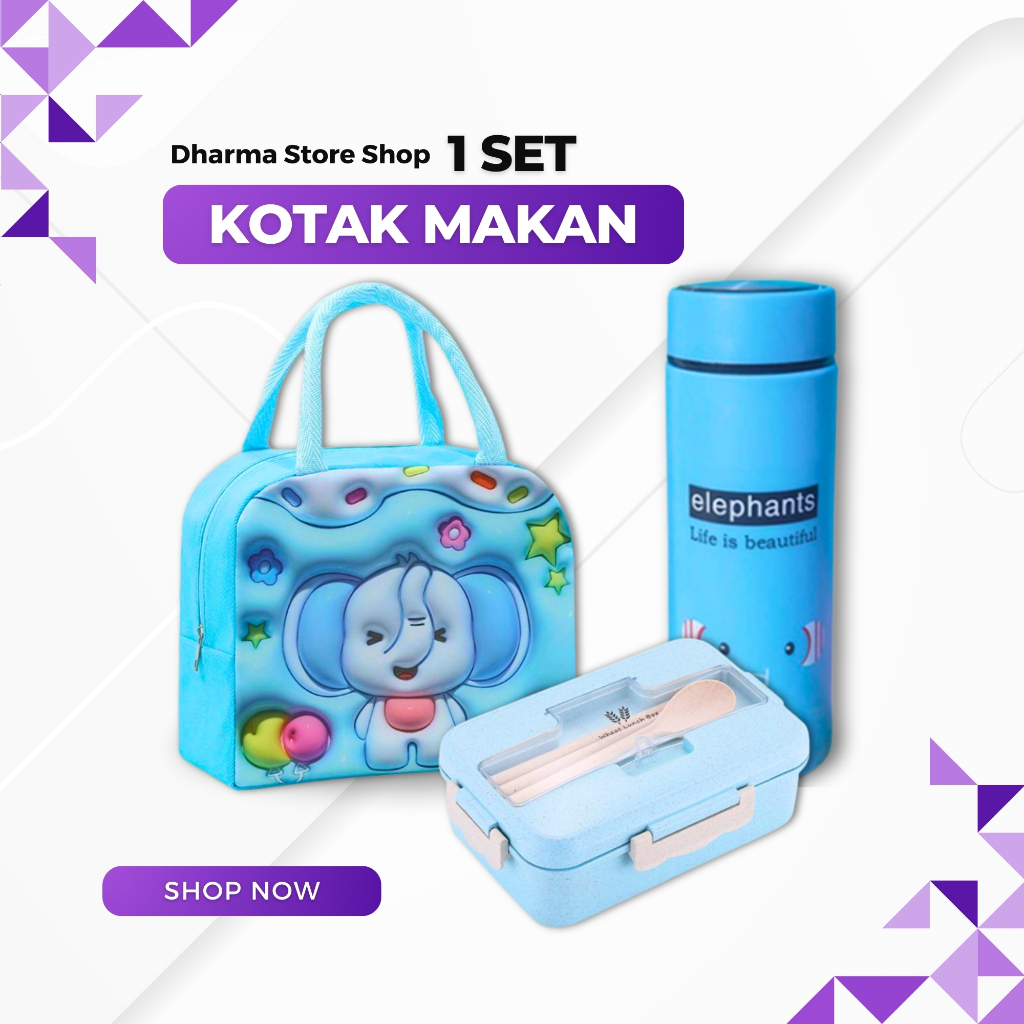Lunch Box Anak Tempat Makan Kotak Bekal Sekolah TK SD Set Tas Karakter Botol Minum Karakter