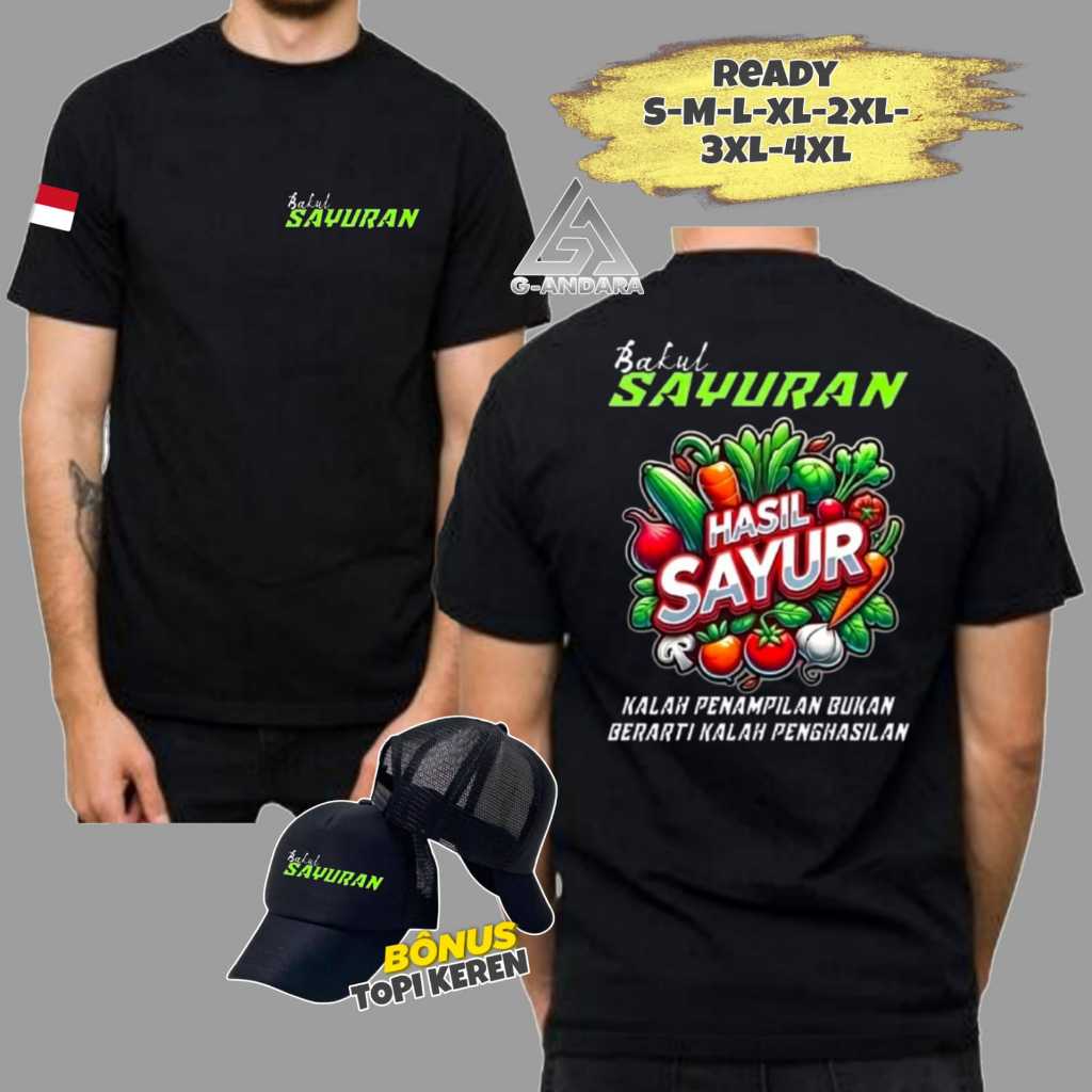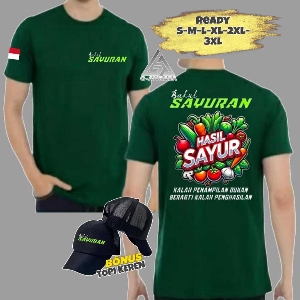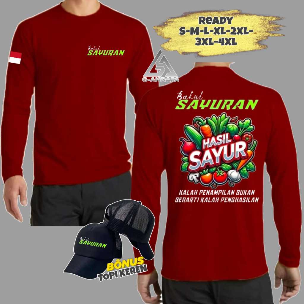 KAOS BAKUL SAYURAN HASIL SAYUR READY LENGAN PENDEK DAN LENGAN PANJANG BONUS TOPI