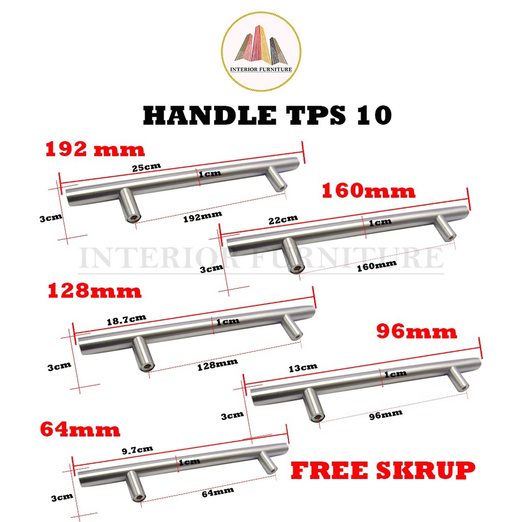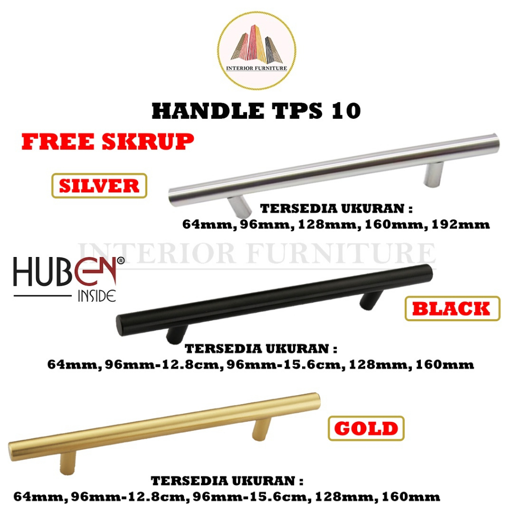 Handel TPS 10 Handle Tarikan Minimalis Brush Nickel Steel Baja Brush&Hitam