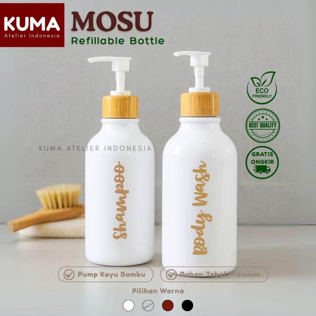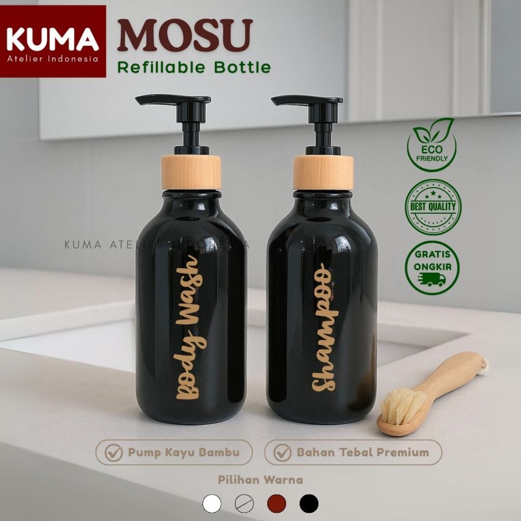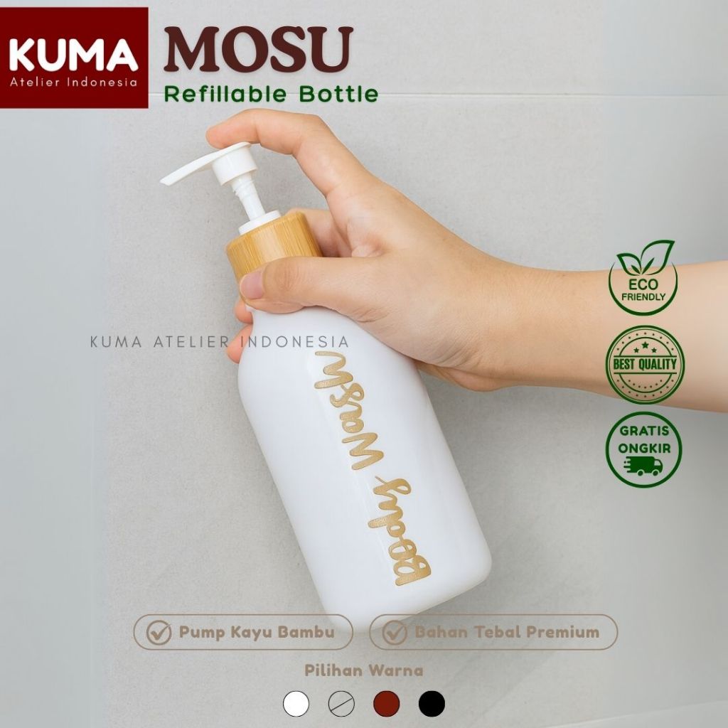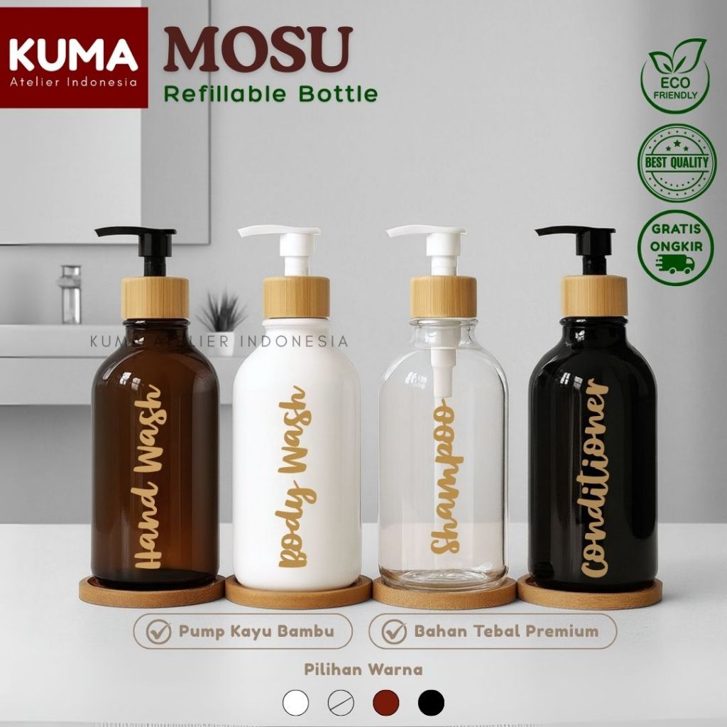 KUMA Wood Bottle 500ml Botol Isi Ulang Tutup Kayu 500ml Warna Putih Amber Coklat Aestetik Motif Kayu