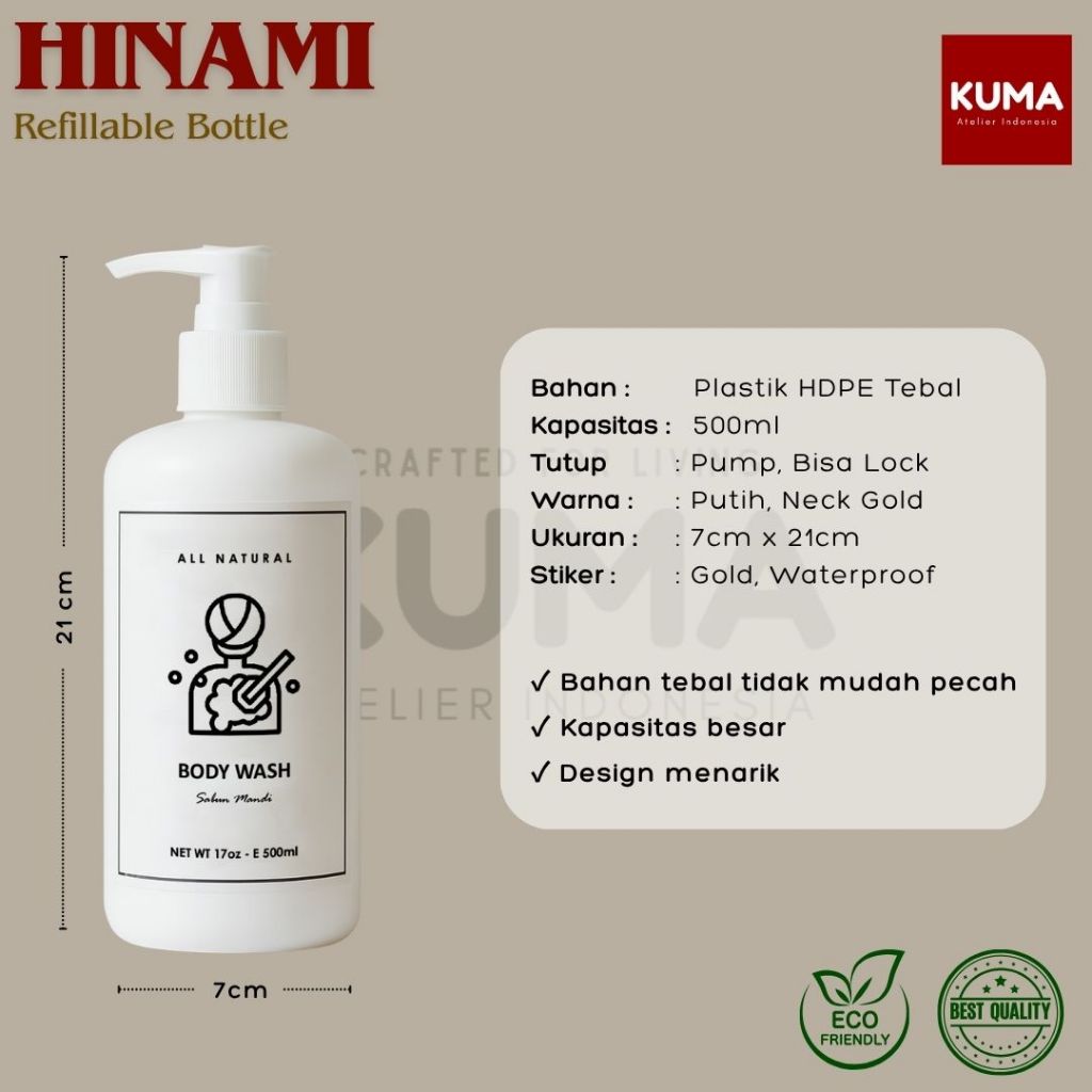 KUMA Kino Botol Sabun Isi Ulang 500ml Bahan Plastik Free Stiker Waterproof