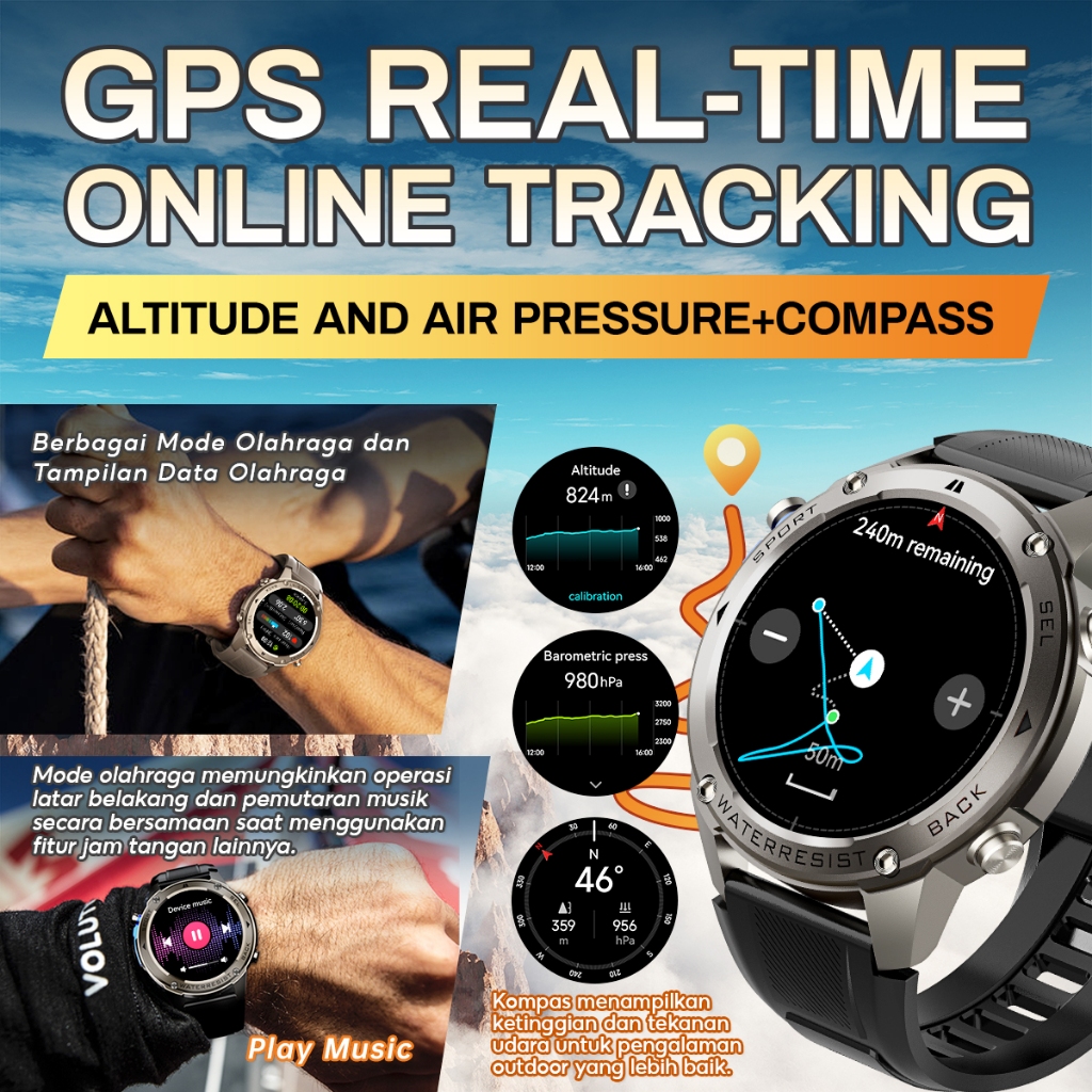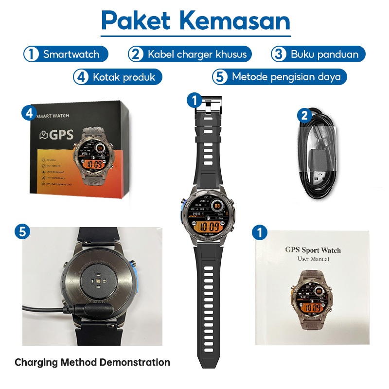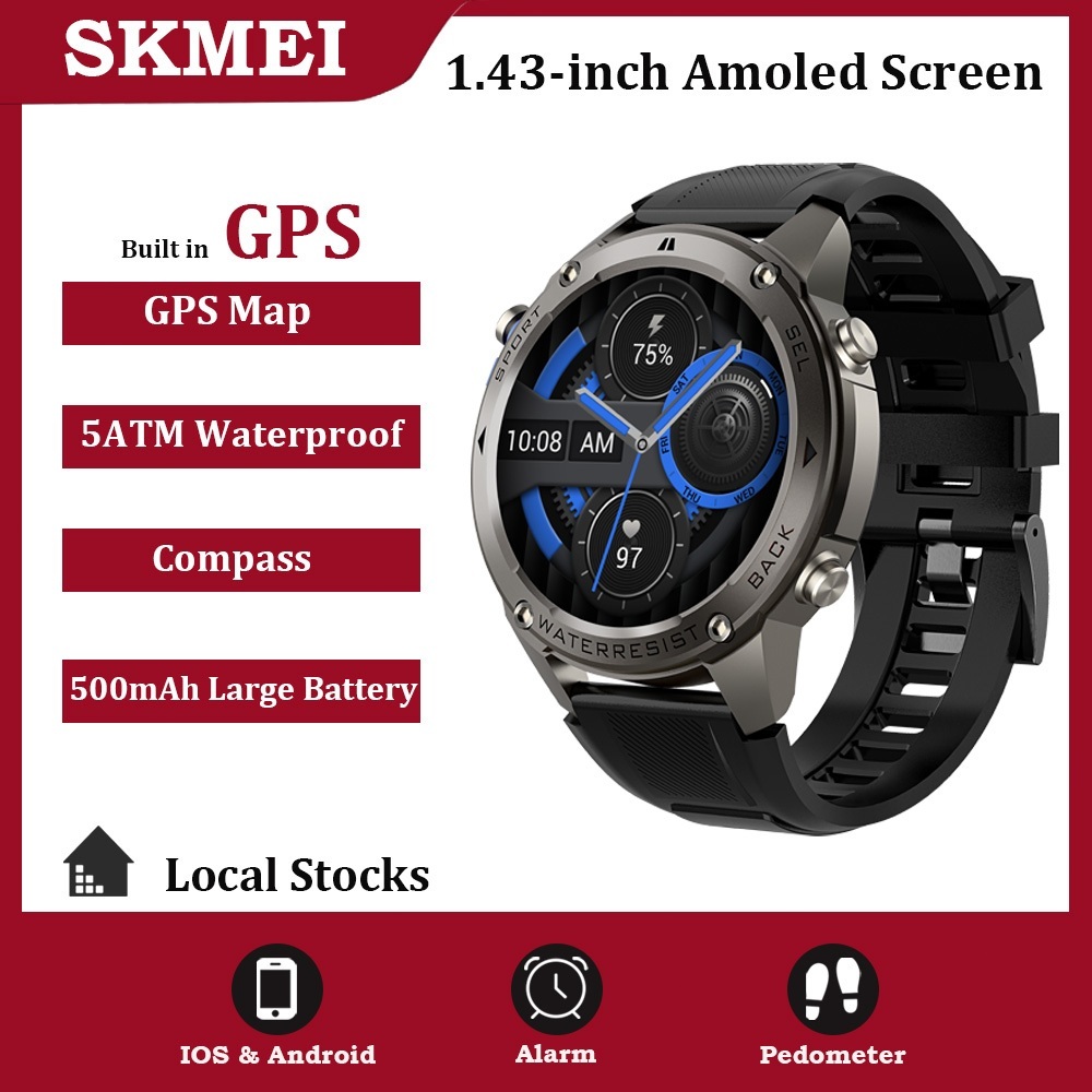 SKMEI Smartwatch DM56 Built-in GPS Outdoor Sports Jam Tangan Pintar Tahan Air 5ATM | Layar AMOLED 1.43inci |Smartwatch Pria | Compass | Lokasi Lebih Akurat saat Lari di Hutan atau Kota