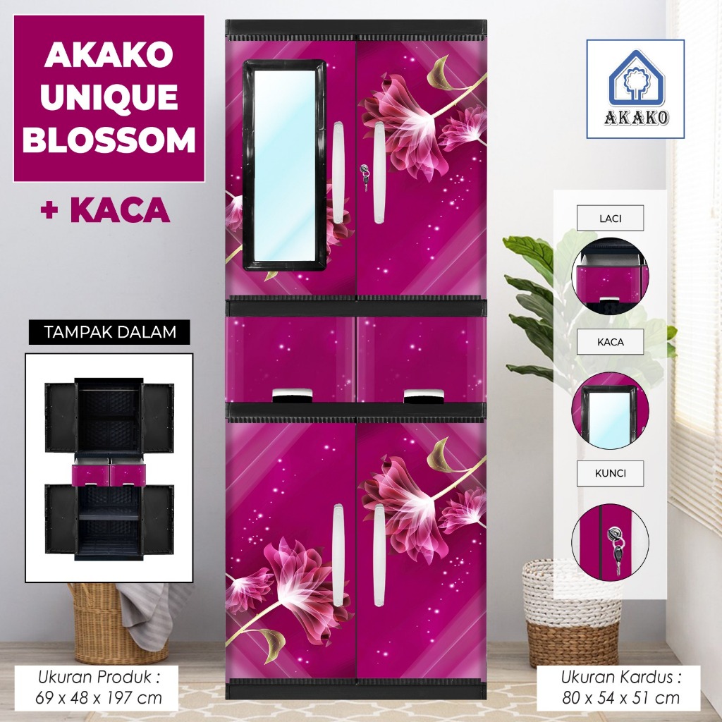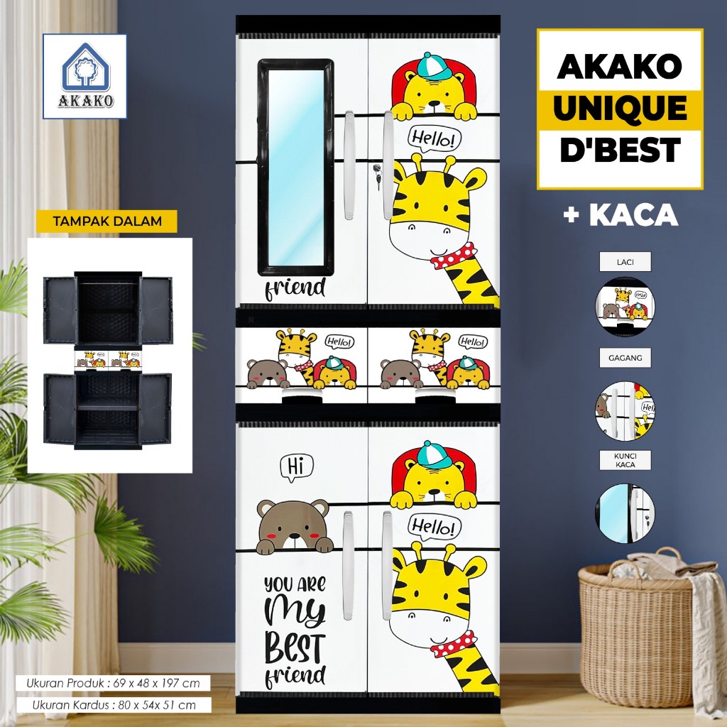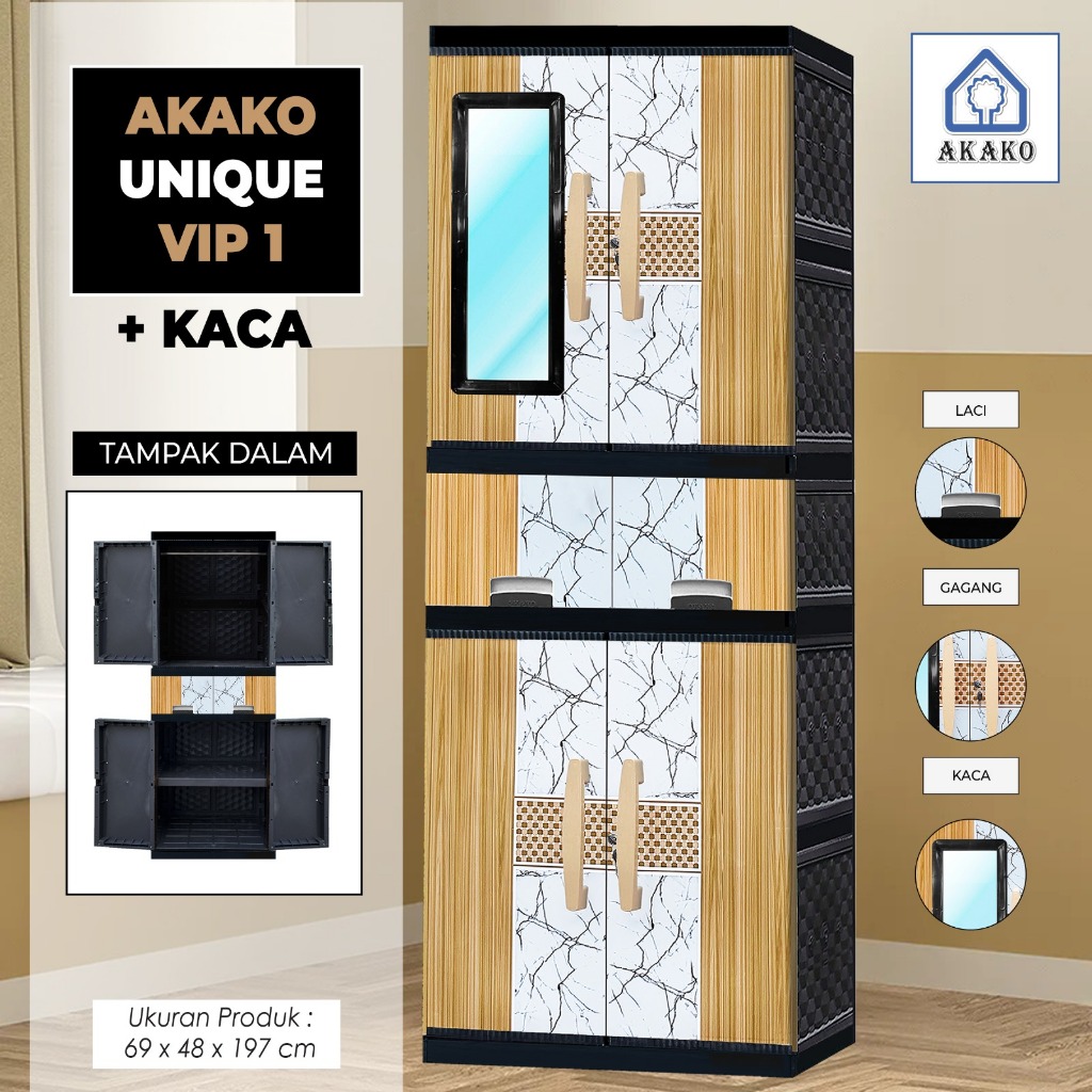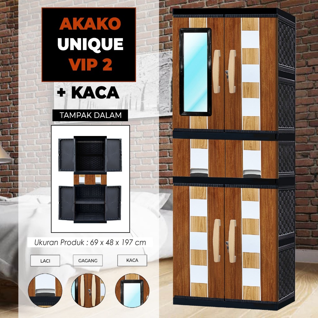 AKAKO - LEMARI PAKAIAN LEMARI PLASTIK 2 PINTU LEMARI JUMBO GANTUNG + RAK AKAKO UNIQUE VIP MOTIF PRINTING