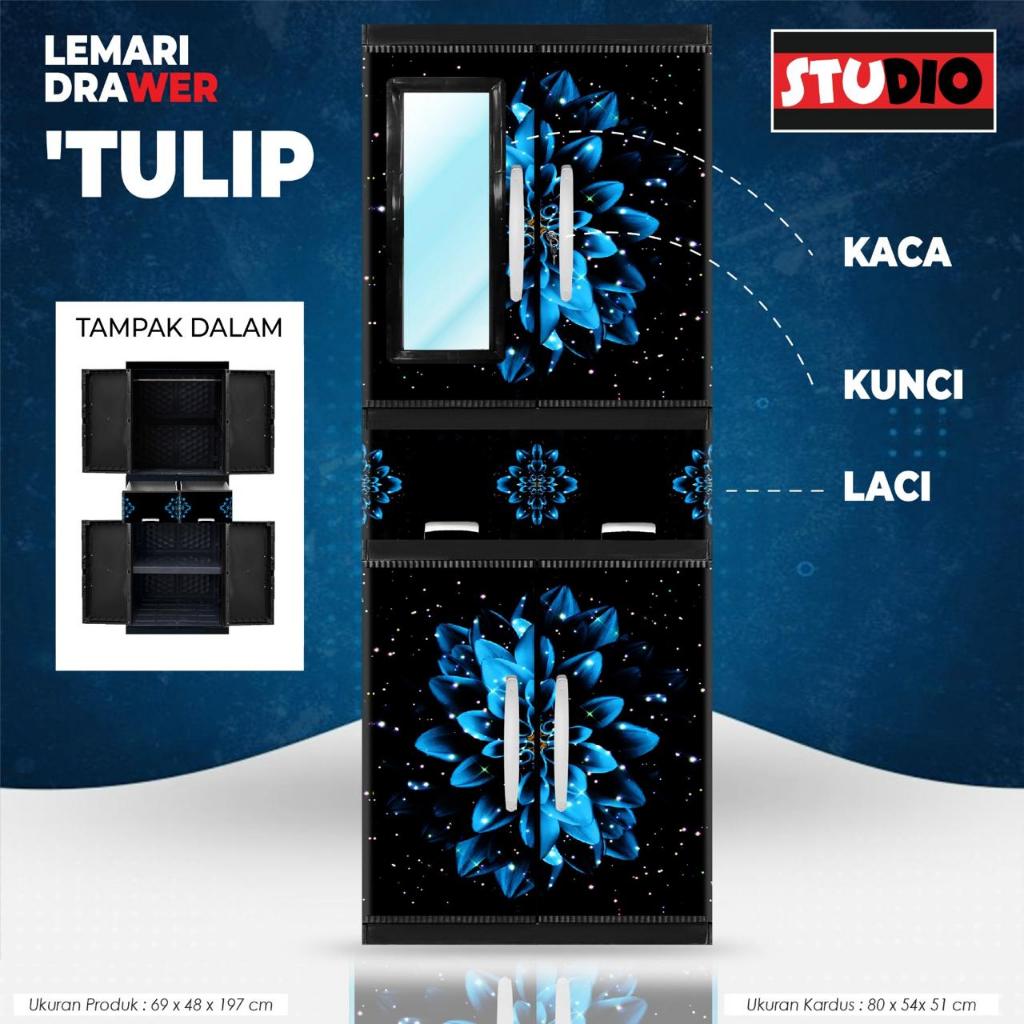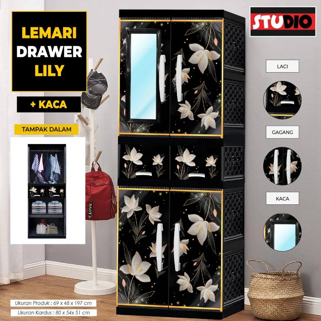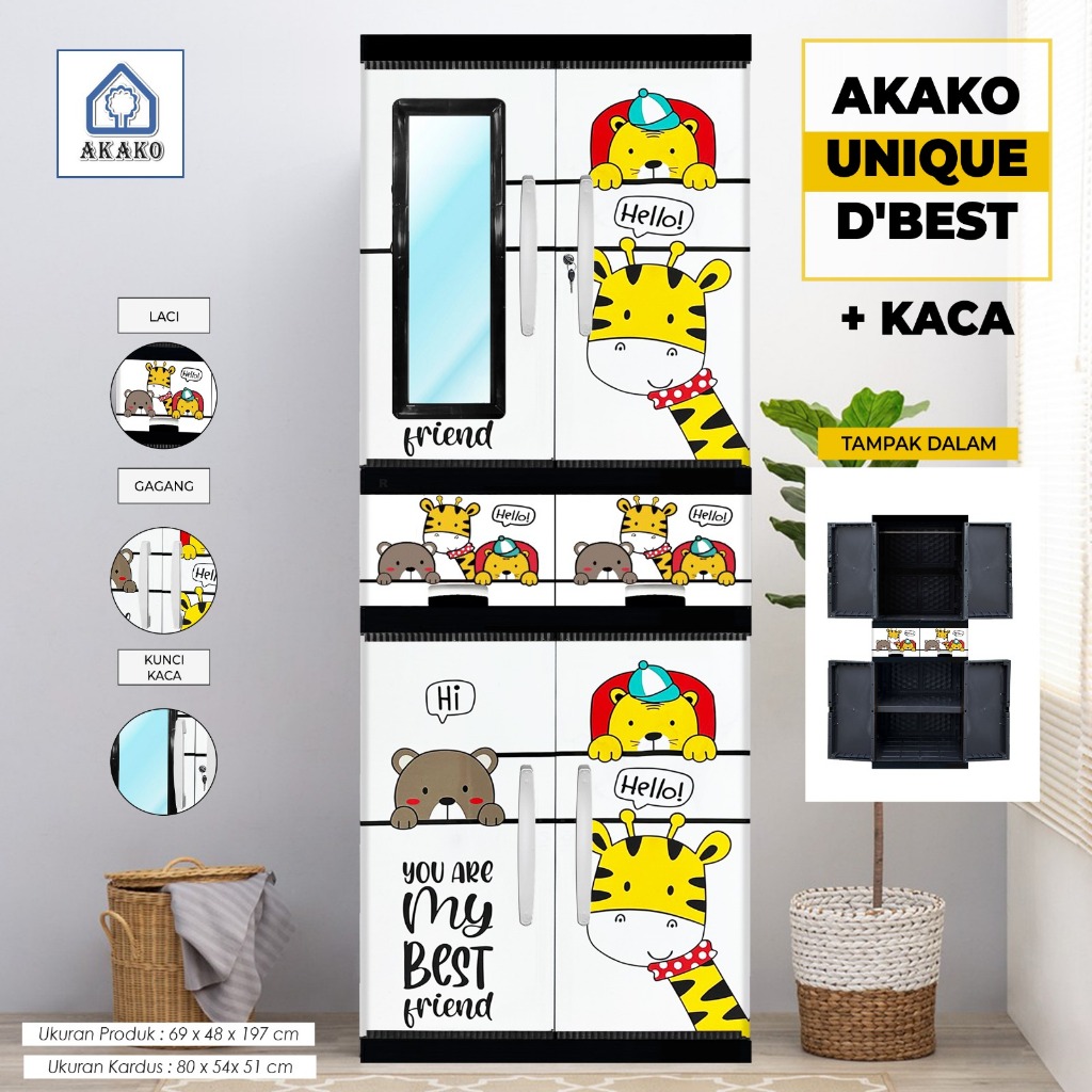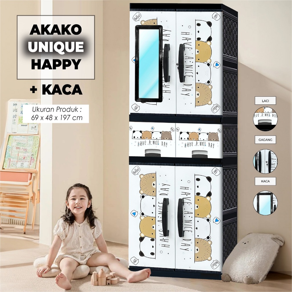AKAKO - LEMARI PAKAIAN LEMARI PLASTIK 2 PINTU LEMARI JUMBO GANTUNG + RAK AKAKO UNIQUE VIP MOTIF PRINTING