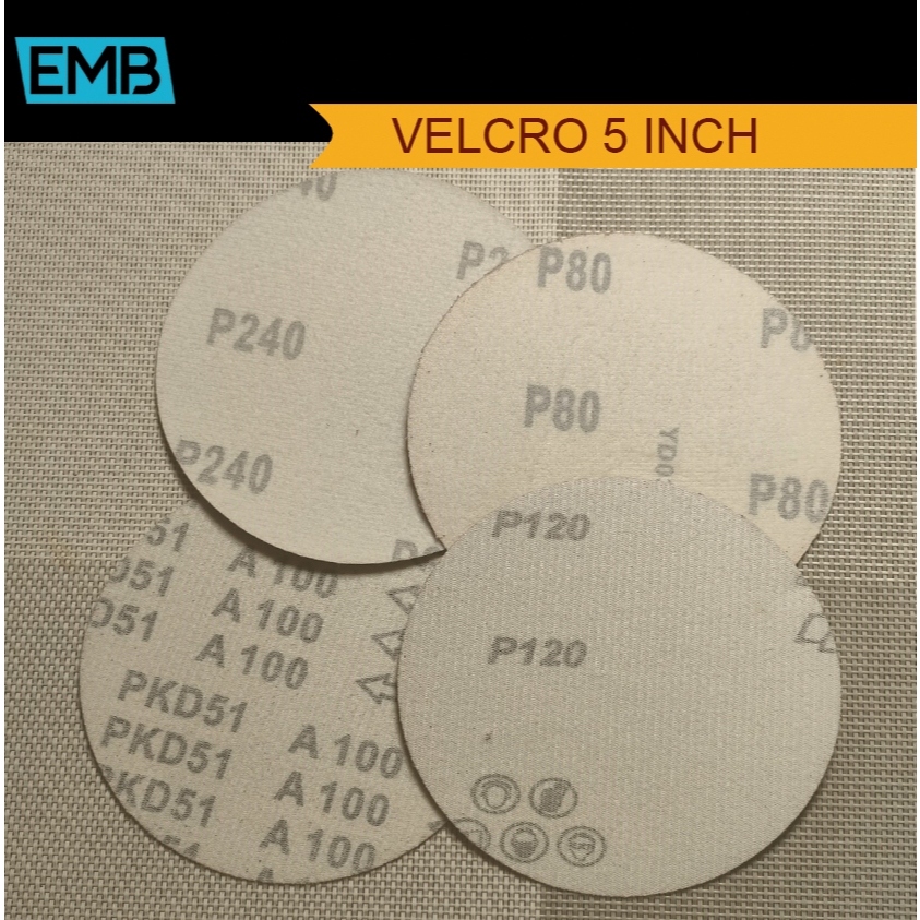 Amplas Velcro disc 5 inchi / 5" inch abrasive paper kertas tempel grit 80 120 240 320 p80 p120 p240 p320
