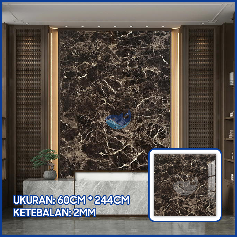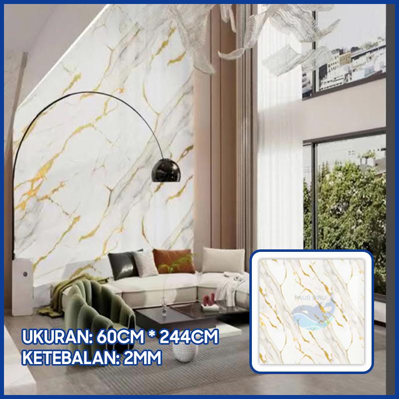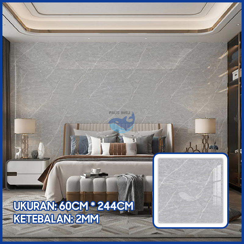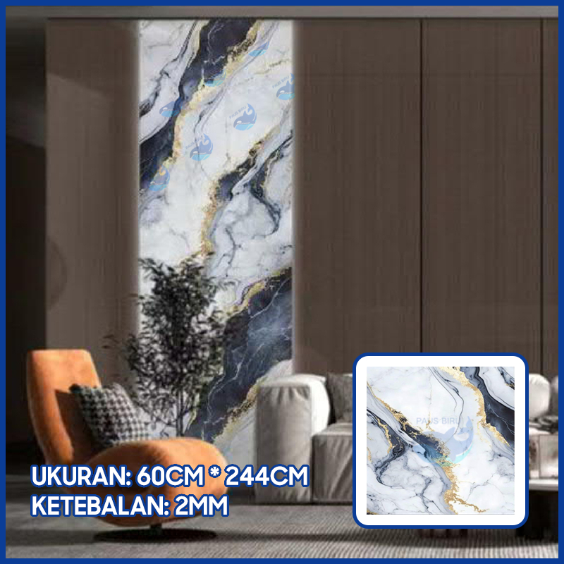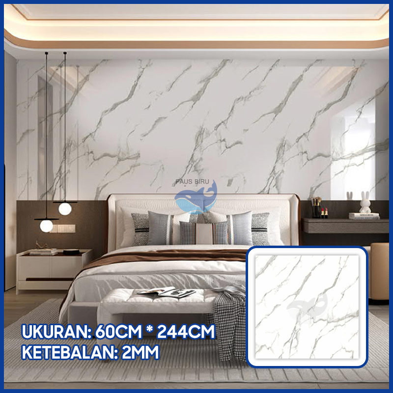 Paus Biru - wallpaper marmer jumbo Wallpaper Dinding Motif Vinyl Marble Foam Roll Sticker Kamar Dekorasi PET 60 x 244cm A51
