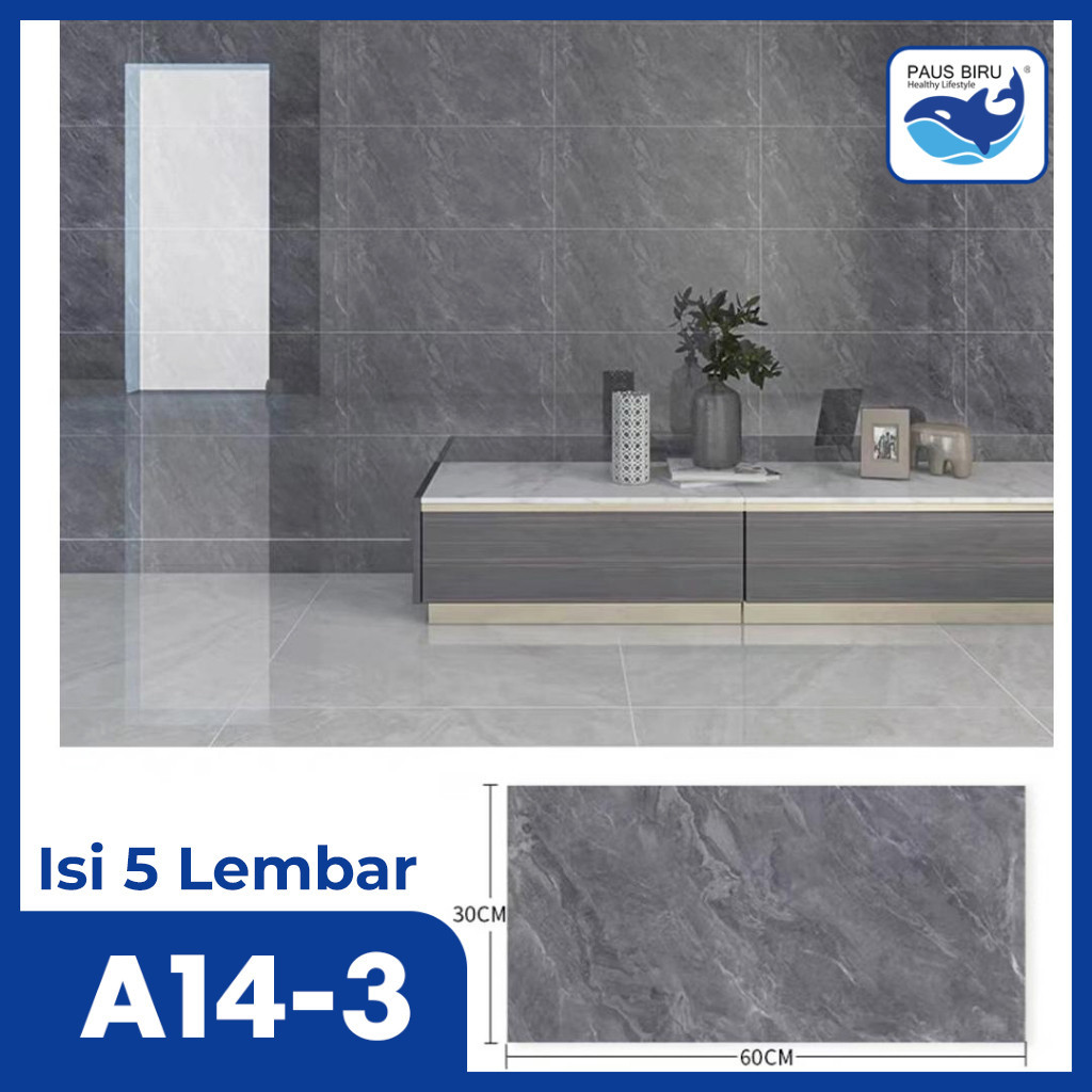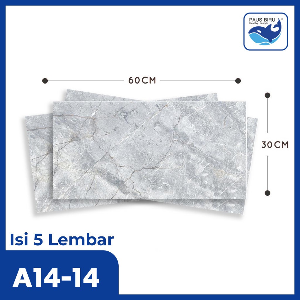 Paus Biru - Paket 5 Lembar!!! Wallpaper dinding Vinyl Marble Granit 30 x 60 cm(0,3cm) A14