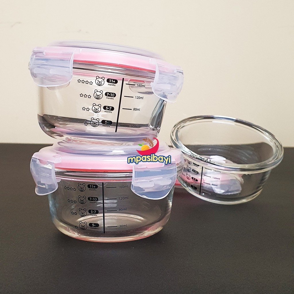 Glass food container Kaca mpasi bayi 1 pc ada takaranya elegan tempat makanan bayi kaca