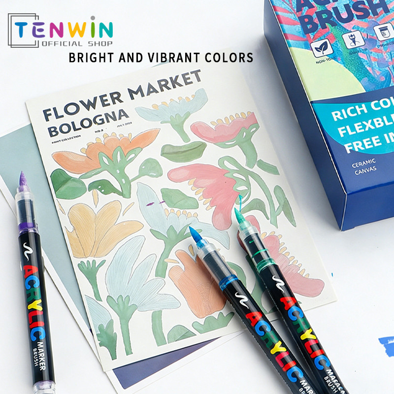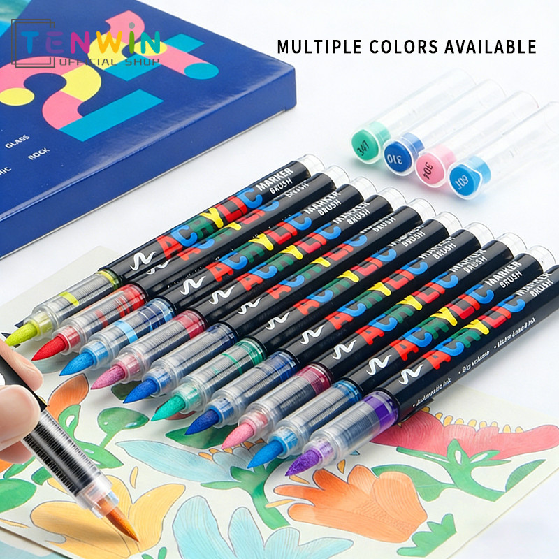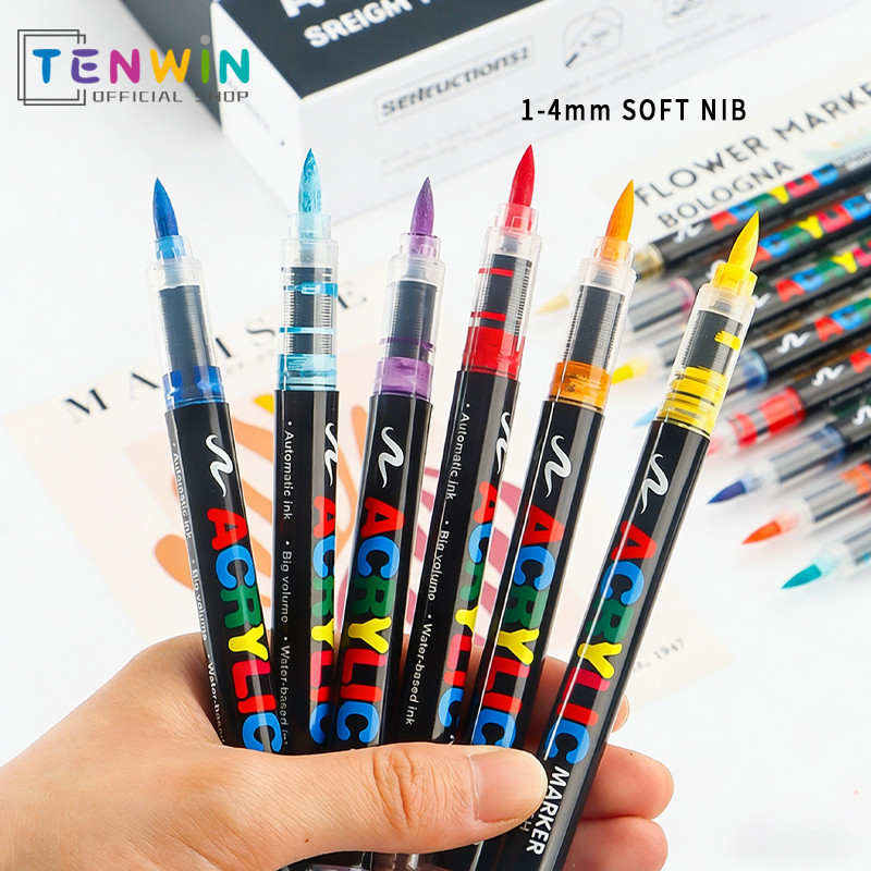 Marker Acrylic Brush Pen Spidol Warna Akrilik Lentur Sketsa Seni-Tenwin