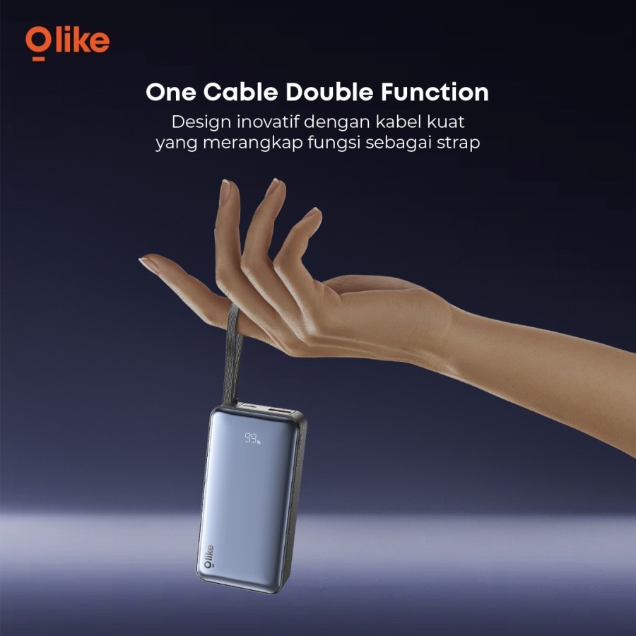 POWERBANK OLIKE P12 NANO 9000MAH BUILT IN USB TYPE C AND LIGHTNING IPHONE CABLE 20W FAST CHARGING