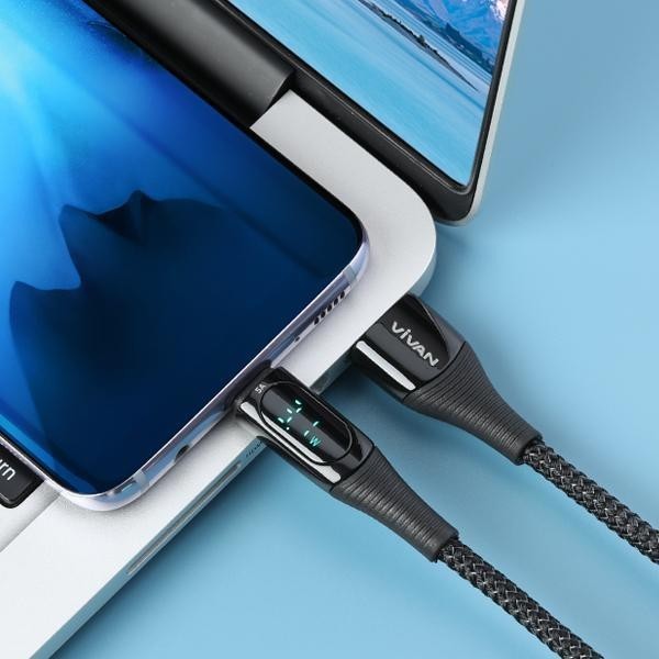 KABEL DATA VIVAN VIC100 USB TYPE-C 5A FAST CHARGING DIGITAL DISPLAY 1M