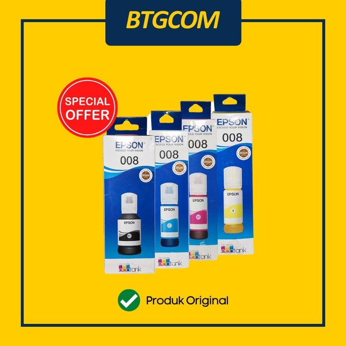TINTA PRINTER EPSON 008 PIGMEN BLACK/BK/HITAM CYAN/C/BIRU MAGENTA/M/MERAH YELLOW/Y/KUNING CMYK SET ORIGINAL REFILL INK FOR L6550 L6580 L15150 L15160
