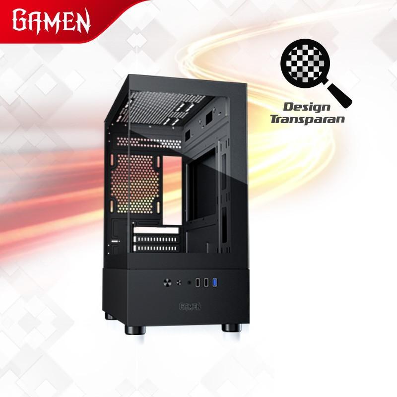 CASING PC GAMING TRANSPARAN GAMEN GCS100 M-ATX/MICRO ATX CASE TEMPERED GLASS BLACK UP TO 3 RGB FANS