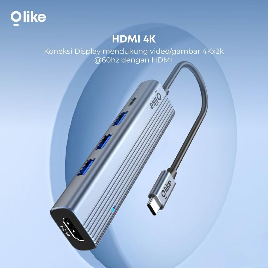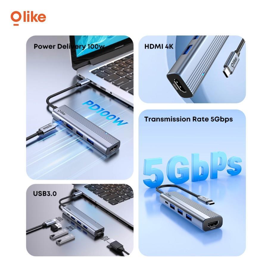 USB HUB OLIKE DH04 5 IN 1 USB TYPE C TO HDMI USB-C 3 PORT USB 3.0 SPACE GREY