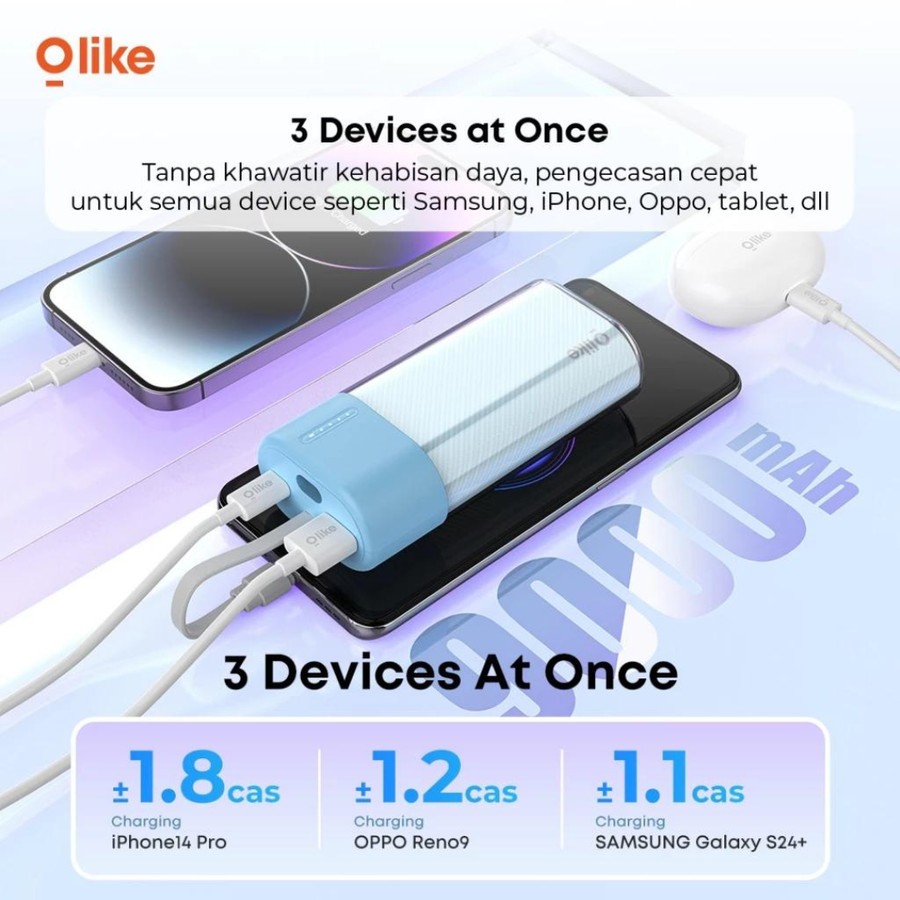 POWERBANK OLIKE P10C BABY BLUE 9000MAH COMPACT POP MINI SIZE BUILT-IN USB C FAST CHARGING 20W QUICK