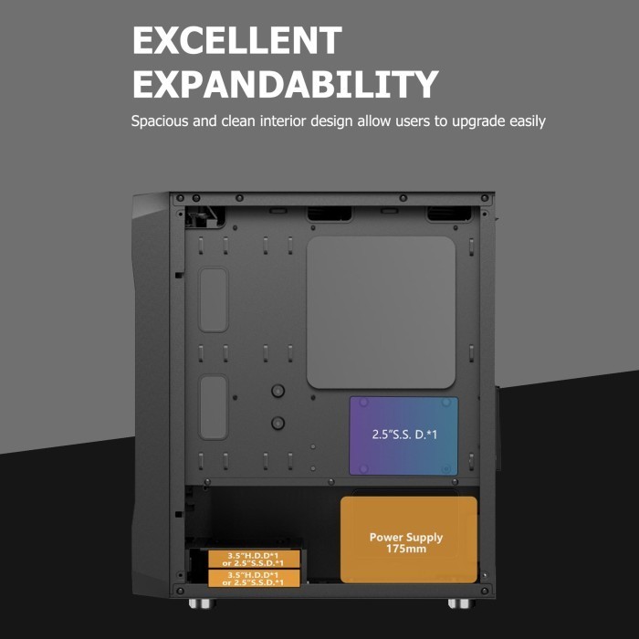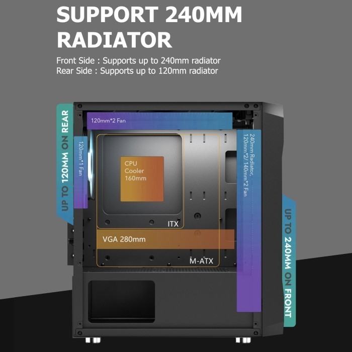 CASING VENOMRX PRAVA BLACK MICRO ATX PC CASE FREE 2 ARGB FANS
