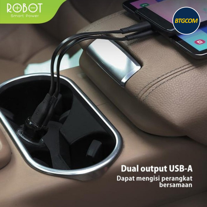 ROBOT RT-C07 BLACK 2.4A DUAL PORT USB FIREPROOF CAR CHARGER MOBIL