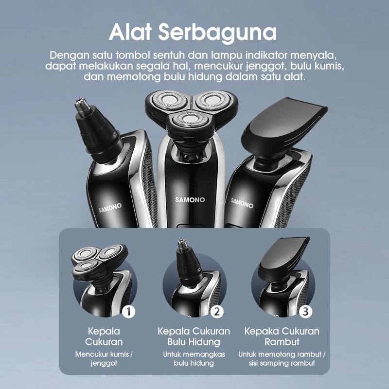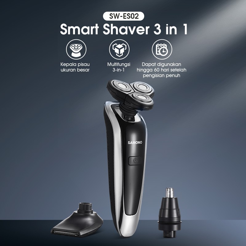 SMART SHAVER SAMONO SW-ES02 ALAT CUKUR KUMIS JENGGOT RAMBUT BULU HIDUNG ELEKTRIK 3 IN 1 MULTIFUNGSI