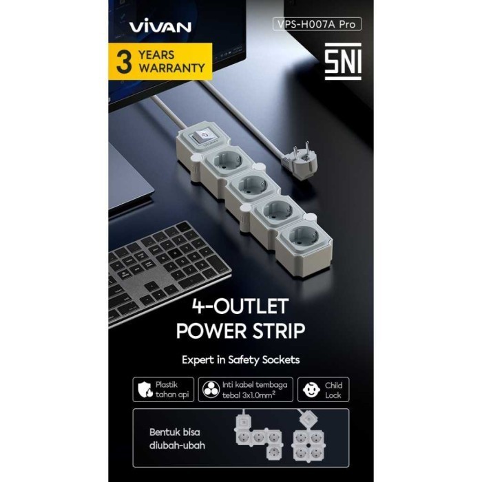 STOP KONTAK VIVAN VPS-H007A PRO GRAY 4 SLOT SOCKET COLOKAN LISTRIK 4000W CHILD LOCK PROTECTION