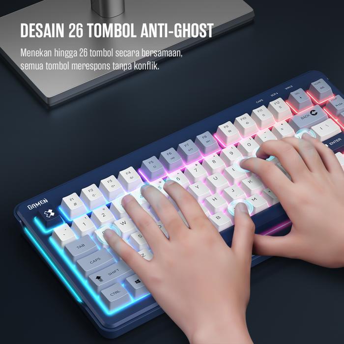 KEYBOARD GAMING GAMEN MEMBRANE GK210 RGB PBT BLUE DENGAN EFEK LAMPU RGB & 26 TOMBOL ANTI-GHOSTING