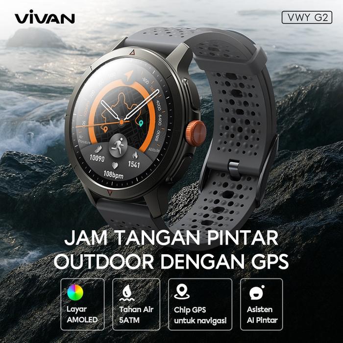 SMART WATCH VIVAN VWY G2 BLACK JAM TANGAN PINTAR AMOLED 1.6" GPS NAVIGATION 5ATM WATERPROOF AI ASSISTANT
