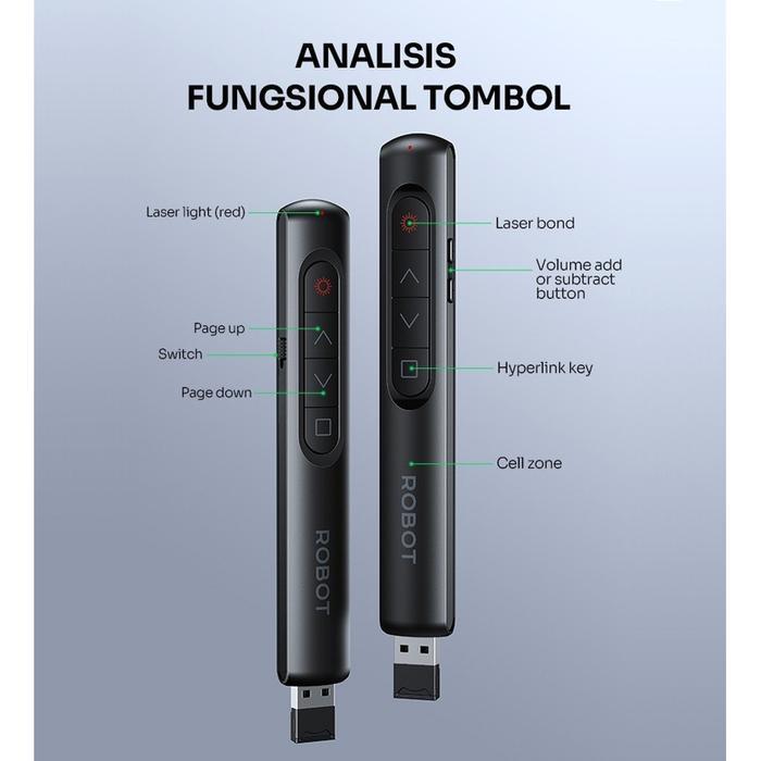 POINTER ROBOT RLP01 WIRELESS LASER MULTIFUNGSI PRESENTER REMOTE CONTROL UNTUK PRESENTASI
