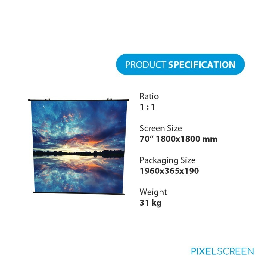 WALL SCREEN PROYEKTOR PIXELSCREEN XH70 HANGING UP ROLL LAYAR PROJECTOR 70 INCH 1:1 180x180CM PIXEL