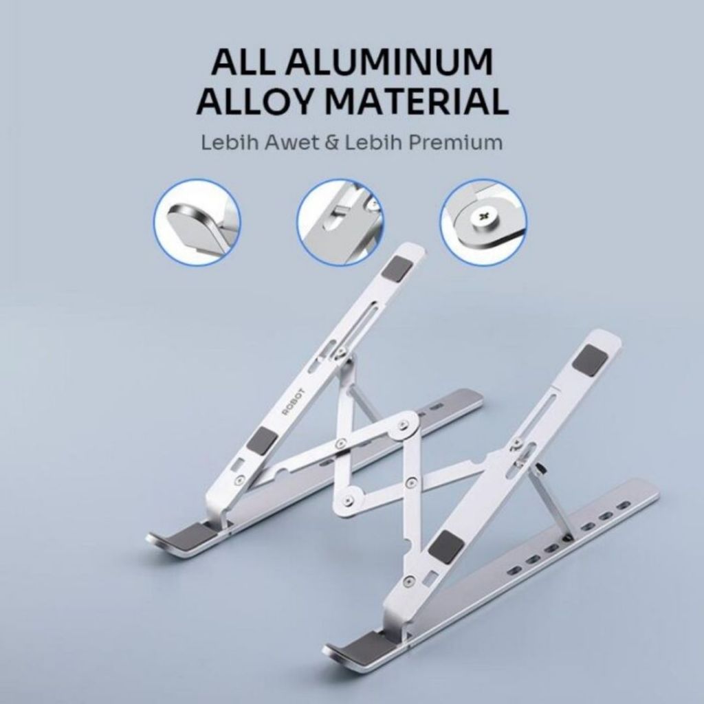 LAPTOP STAND ROBOT RT-LS04A SILVER FOLDABLE LAPTOP COOLING STAN & ALUMINIUM ALLOY LIFTABLE