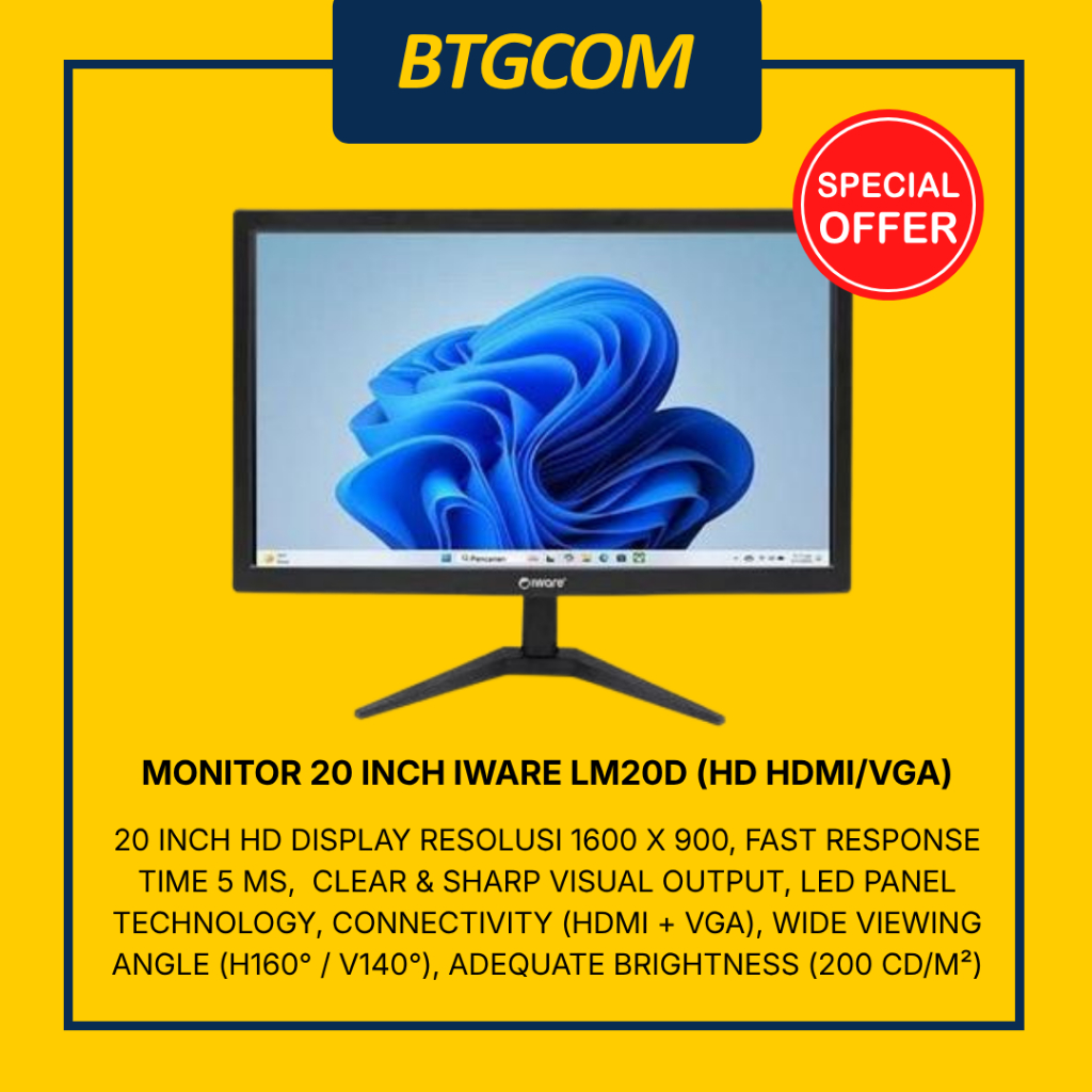 IWARE LM20D MONITOR KOMPUTER LED PC 20 INCH HD DUAL INPUT HDMI/VGA