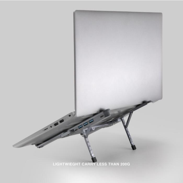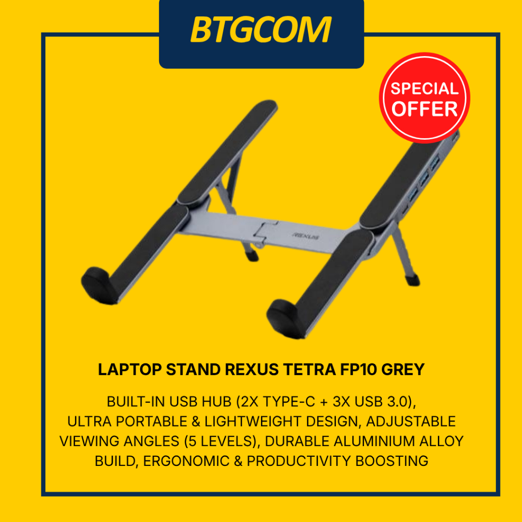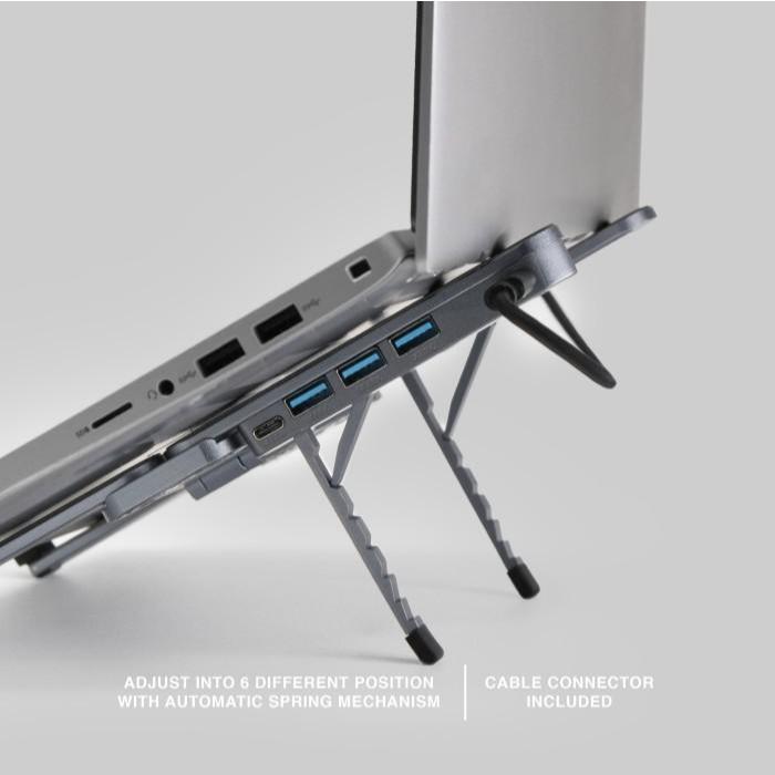 LAPTOP STAND REXUS TETRA FP10 GREY FOLDABLE LAPTOP STAND WITH PORT USB TYPE-C & USB 3.0