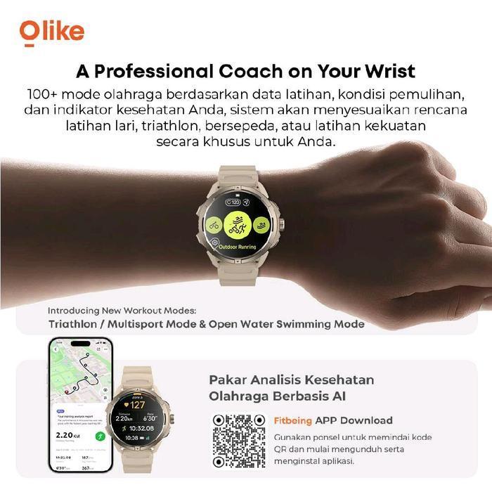 SMART WATCH OLIKE FG03 BEIGE JAM TANGAN PINTAR 1.43 INCH AMOLED HD DISPLAY SCREEN GPS BLUETOOTH CALL WATERPROOF 5ATM SPORT SMARTWATCH HEALTH