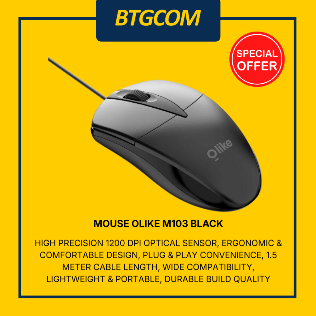 MOUSE OLIKE M103 BLACK WIRED MOUSE OPTICAL 1200DPI ERGONOMIC COMFORTABLE