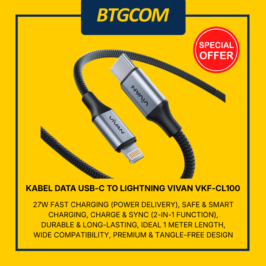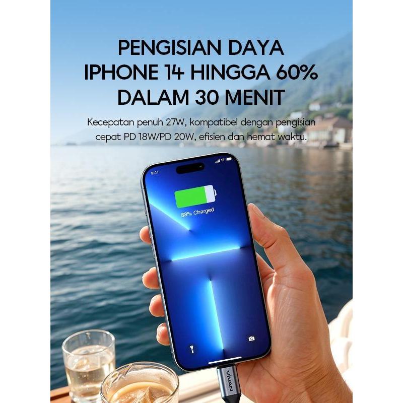 VIVAN VKF-CL100 KABEL DATA USB TYPE-C TO LIGHTNING/IPHONE BLACK 1 METER 3A 27W FAST CHARGING POWER DELIVERY