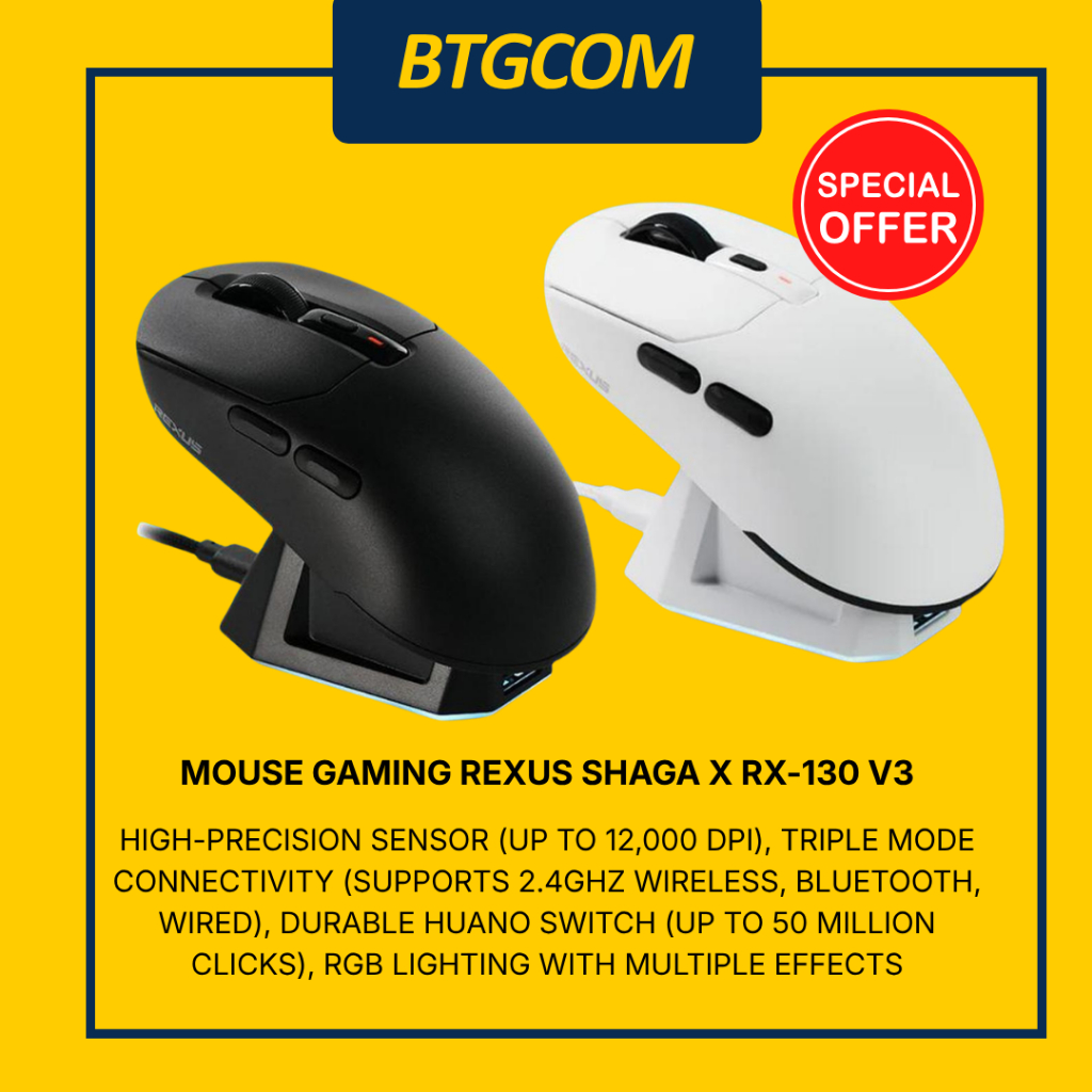 MOUSE REXUS SHAGA X RX-130 V3 MOUSE GAMING BLUETOOTH WIRELESS & WIRED DOCKING CHARGER 1200DPI