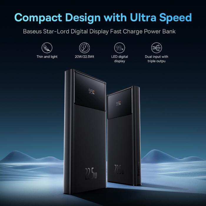 POWERBANK BASEUS STAR LORD 10000MAH 22,5W BLACK FAST CHARGING WITH LED DIGITAL DISPLAY DUAL INPUT TRIPLE USB OUTPUT QUICK CHARGE 10000 MAH POWER BANK