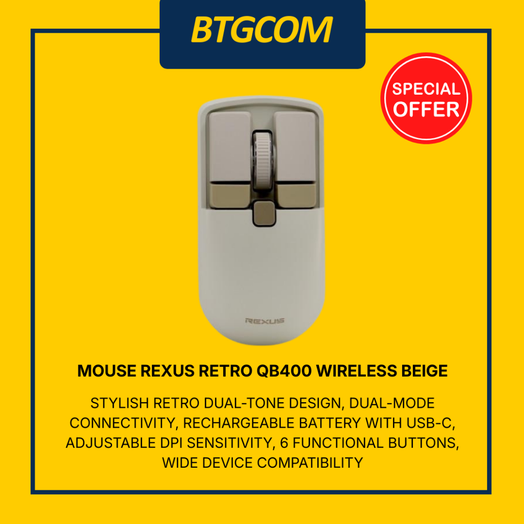 MOUSE REXUS RETRO QB400 MOUSE OFFICE WIRELESS BLUETOOTH UP TO 1600 DPI