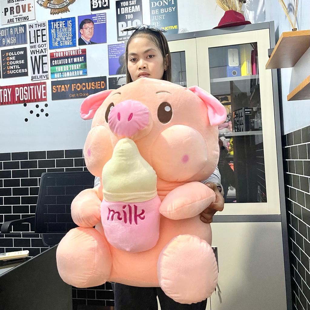 BONEKA BABI SUPER JUMBO 70 CM PIGGY MILK BOTTLE PIG PEGANG BOTOL SUSU PINK GEMOY HALUS LEMBUT LUCU terbaru