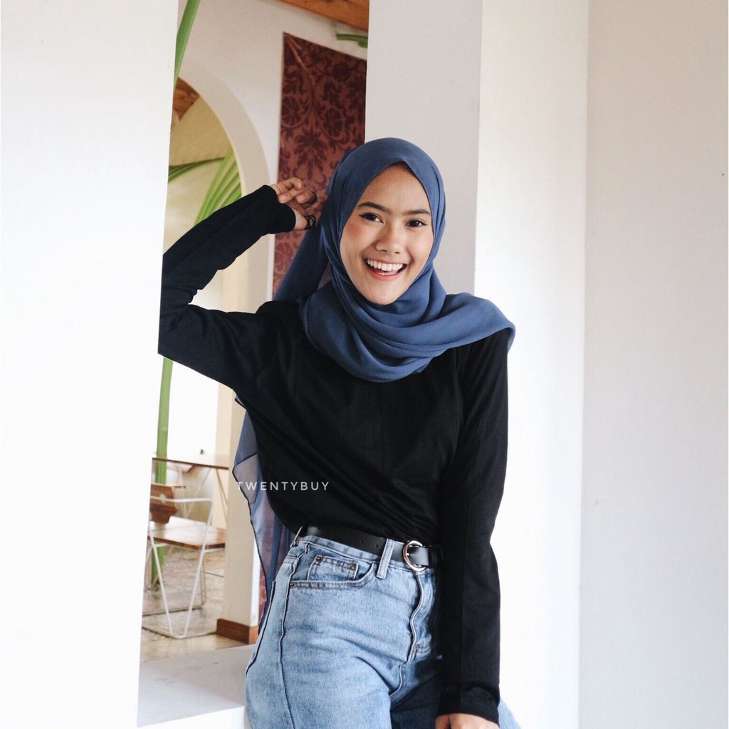 Bess - Kaos Polos Hitam Lengan Panjang Wanita Murah / Kaos Hijab Hitam Polos Premium
