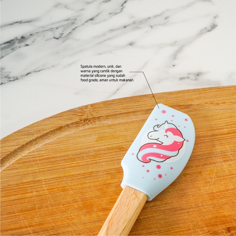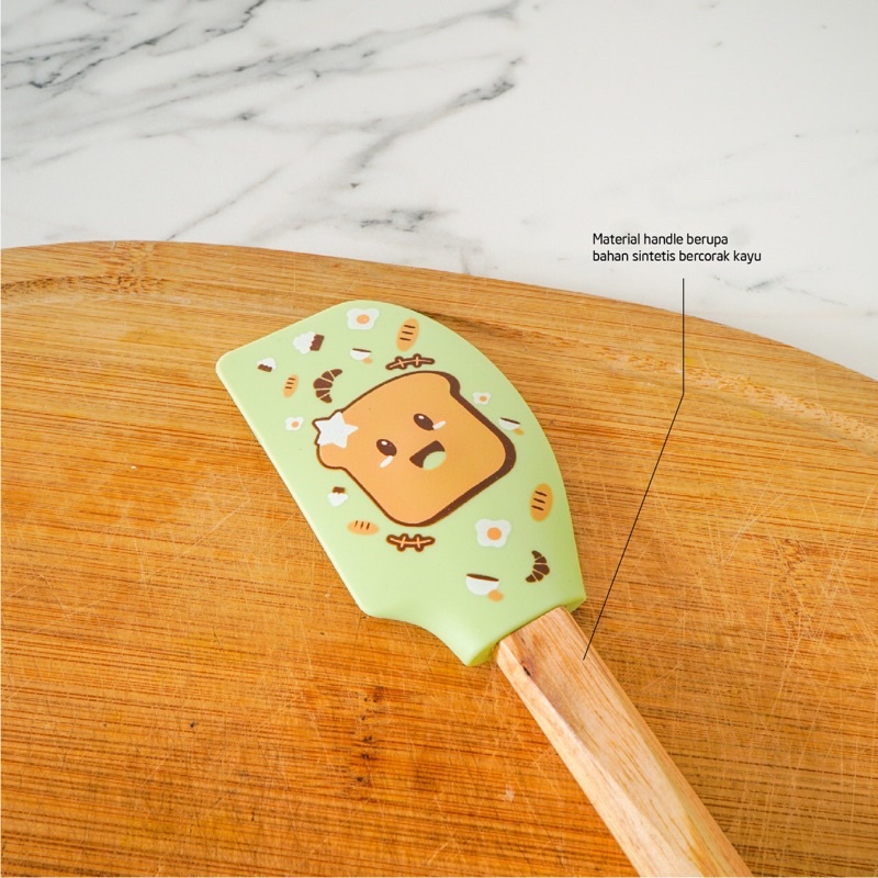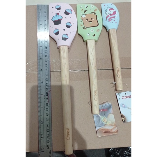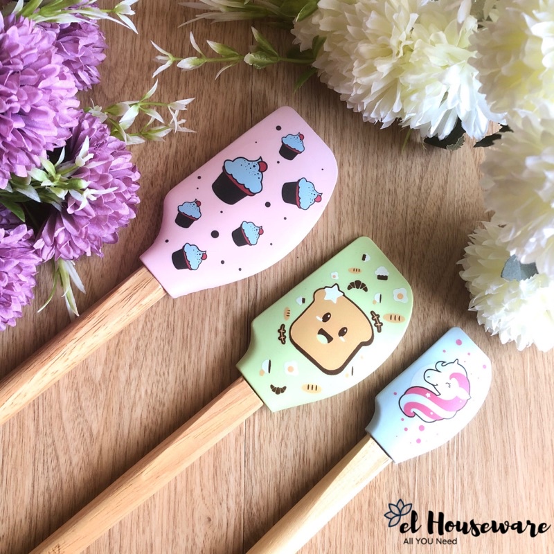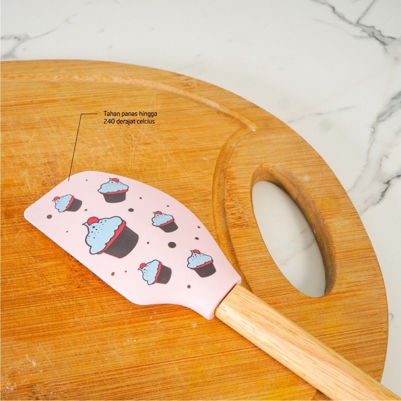 CYPRUZ Spatula Printed | Spatula Silikon Silicone Baking Set Tahan Panas Motif Print Gagang Kayu Pastel