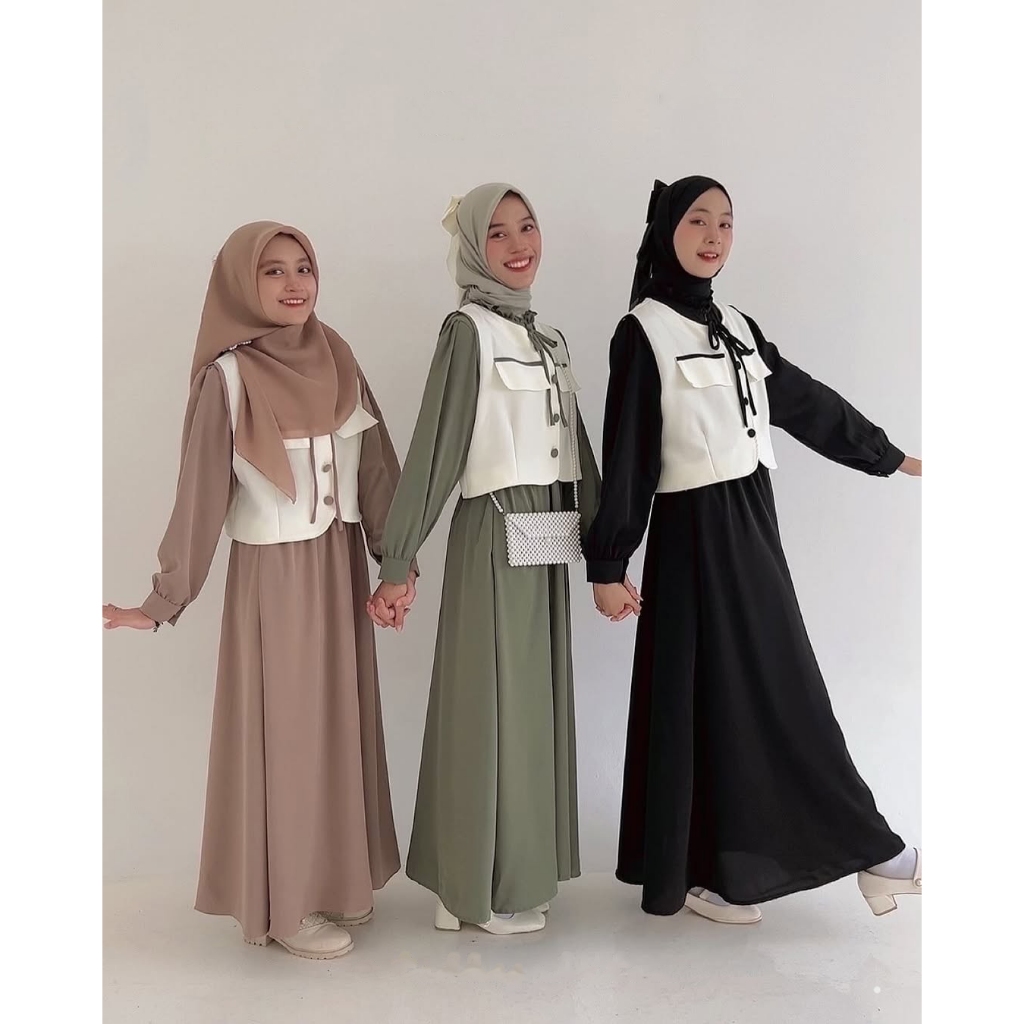 Gamis Set Rompi Remaja Bahan Shakila Premium