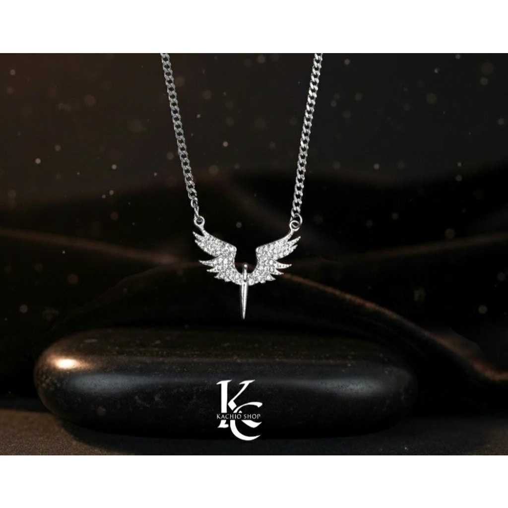 Kalung Necklace Rantai Titanium Silver Pria Wanita Liontin Sayap Mata Elegant Tahan Karat Aksesoris Modis