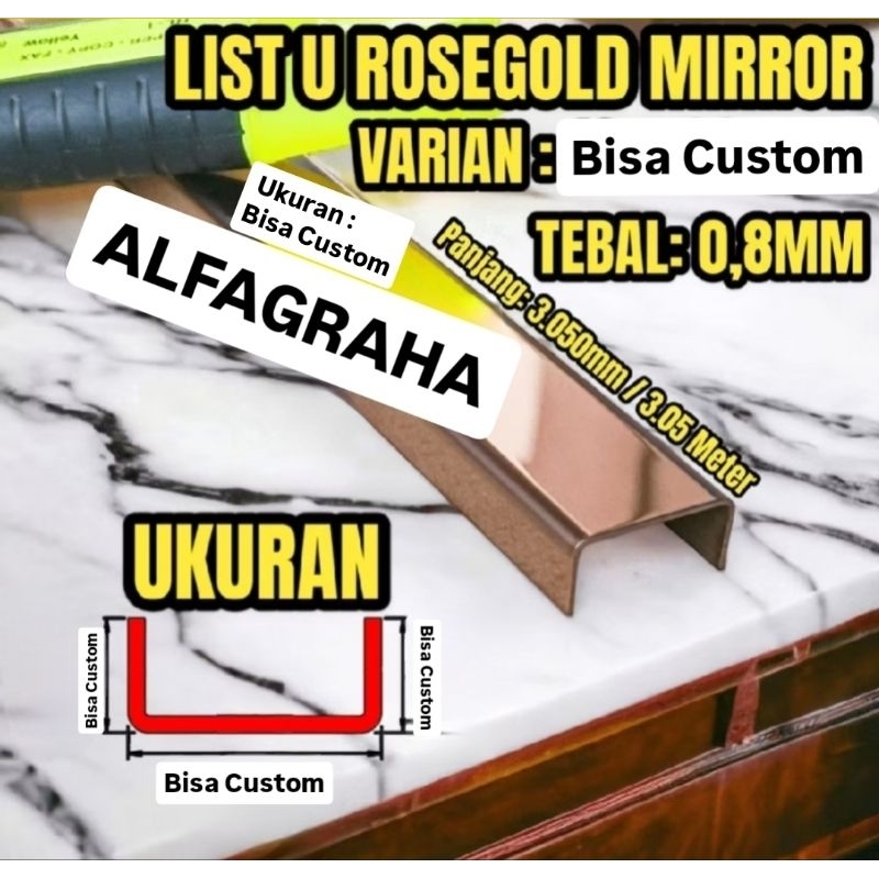 LIST U MIRROR GOLD ROSEGOLD MIRROR BLACK MIRROR GOLD HAIRLINE ROSEGOLD HAIRLINE BLACK HAIRLINE UKURAN X 3.050MM STAINLESS