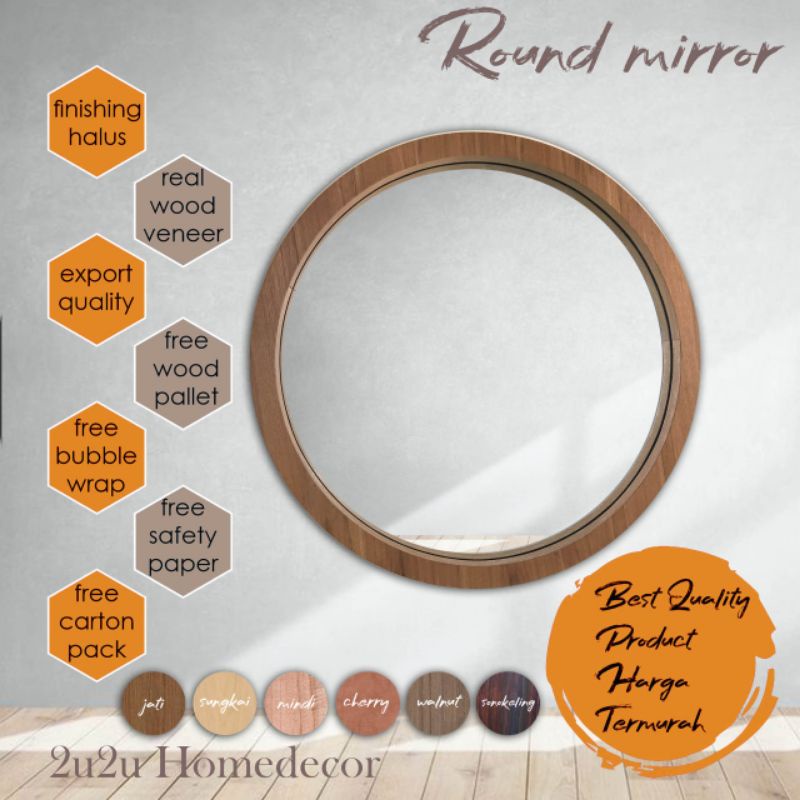 CERMIN BULAT D 40 CM VENEER / BLACK WASH / WHITE WASH