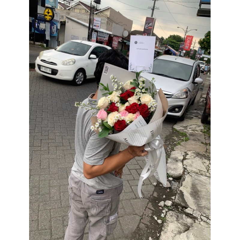 (KHUSUS JOGJA) Thumbelina Roses Mix / Spesial Kado / Buket Bunga Mawar Asli with Foam isi 20 Tangkai/Bouquet Mawar Segar/ Buket Mawar Cone